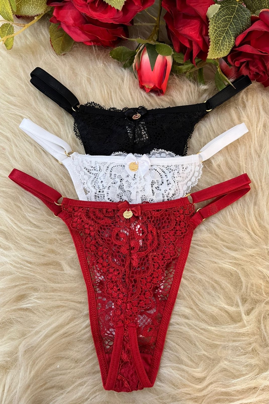 CALCINHA FIO EM RENDA COM REGULAGEM NA LATERAL DP