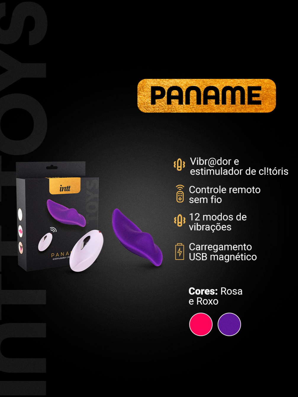 Vibrador e estimulador de clitóris controlado por controle remoto sem fio. O Paname se encaixa perfeitamente na calcinha, estimulando a mulher de uma maneira totalmente inovadora. Solte sua imaginação, use seu Paname por dentro de sua calcinha e aproveite suas caminhadas, noites de festas, jantares e demais encontros como nunca feito antes, seja controlada por seu/sua parceiro(a) e tenha uma noite totalmente diferente. Esse toy ainda pode ser usado para estimular os seios, ânus e o escroto com seus 12 modos diferentes de vibração.