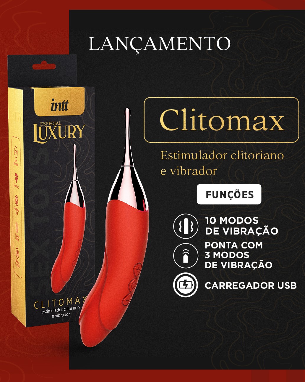 O Clitomax é mais do que um simples brinquedo sexual, é a Varinha Mágica do prazer e satisfação, este toy é projetado para proporcionar momentos de orgasmos intensos. O grande diferencial do Clitomax é seu poder de proporcionar prazer duplo, visto que ele contém uma ponteira vibratória que estimula seu clitóris com 3 intensidades de vibrações fortíssimas e um vibrador penetrável com 10 modos diferentes de estímulo, tudo isso no mesmo brinquedo! Além disso, esse vibrador possui dois motores, elevando seu prazer a níveis exponenciais.