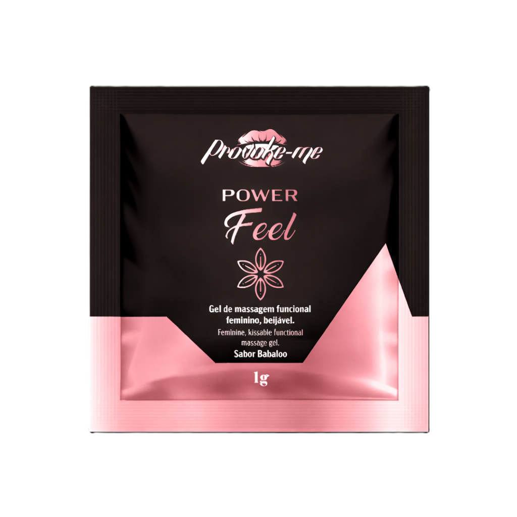O Power Feel é um gel adstringente beijável, com sabor doce de Babaloo, que proporciona a sensação de estreitamento da região íntima.