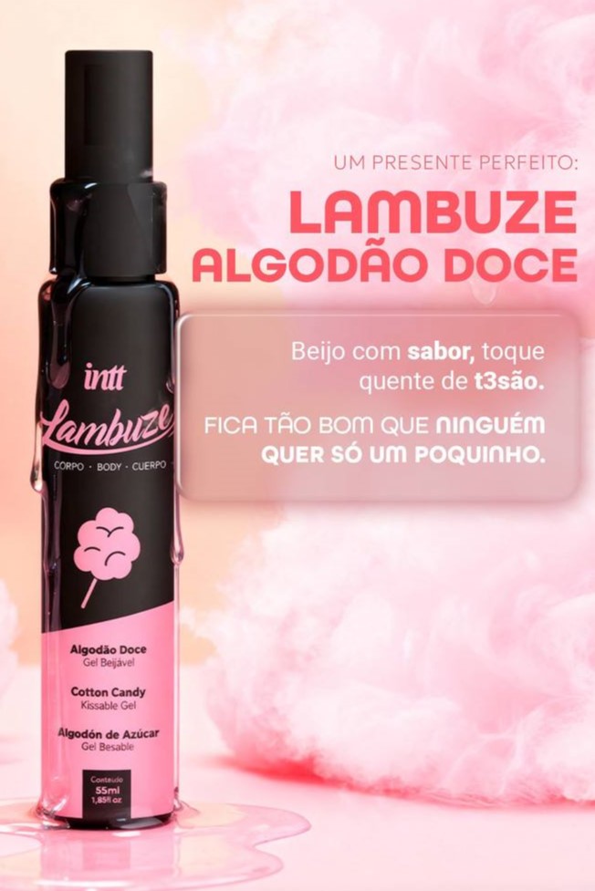 O Lambuze Algodão Doce é um gel com sabor de algodão doce e leve efeito quente.