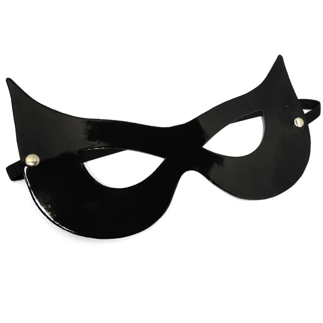 Máscará Mulher Gato confeccionada em tecido verniz sintético liso.