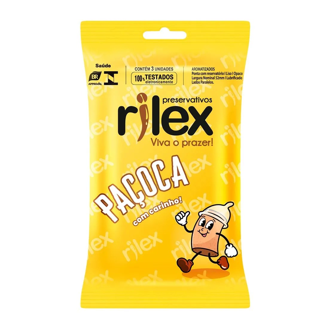Contém: 01 Preservativo Lubrificado com Aroma e Sabor de Paçoca 3 Unidades Rilex;