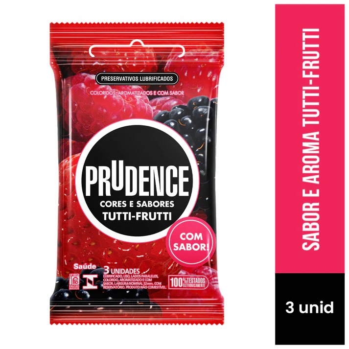 • Contém: 01 Preservativos com 3 unidades Sabor Tutti-Frutti Prudence;